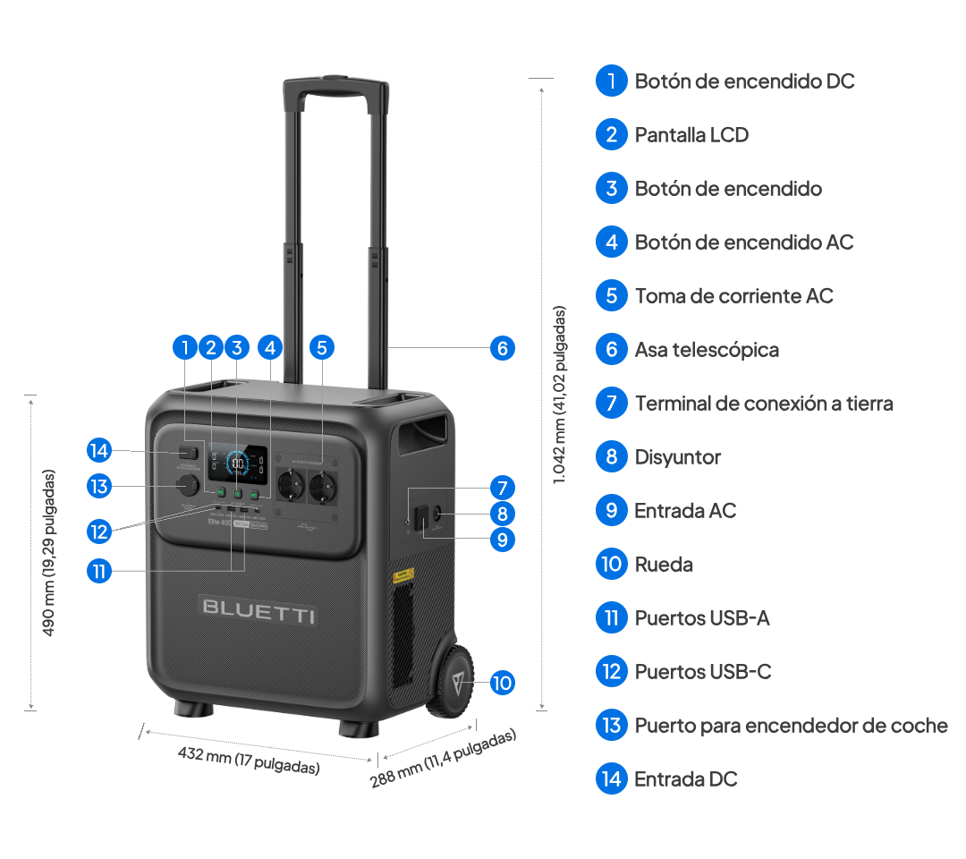 R1. Con 3,84 kWh de capacidad y 2.600 W de potencia, el Elite 400 cuenta con asa telescópica y ruedas para facilitar el transporte. Es ideal para: