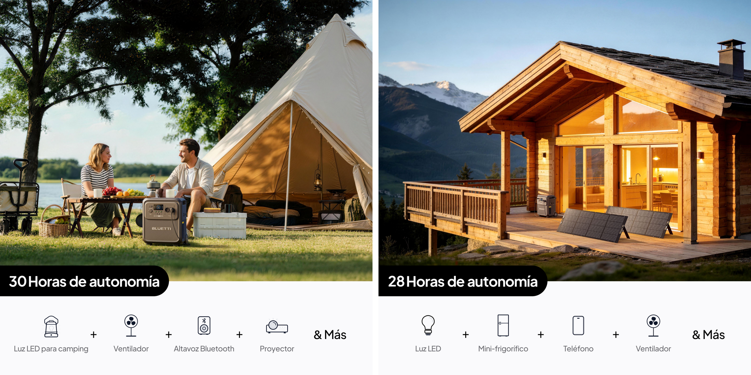 Da vida a tu campamento. Alimenta tu cocina al aire libre, luces y noches de cine, todo con la tranquilidad de energía limpia bajo las estrellas.