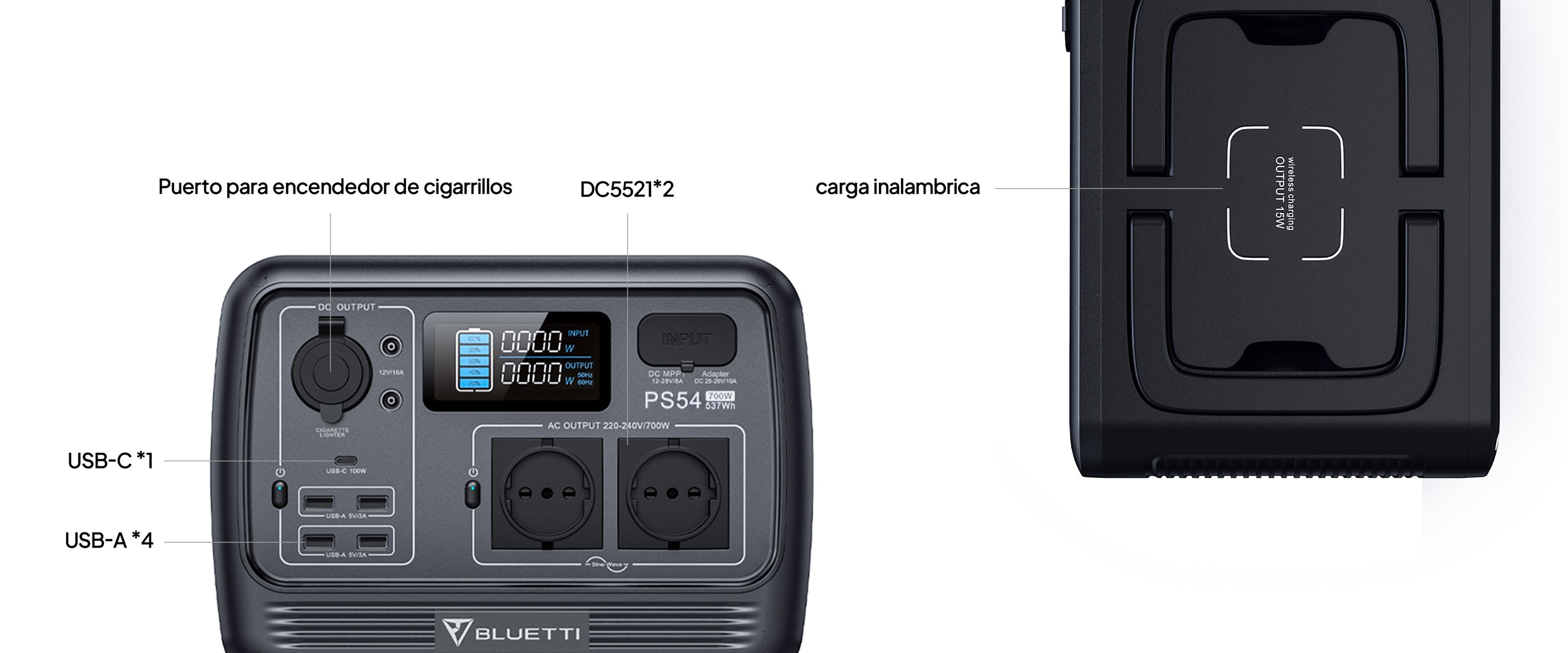 • BLUETTI PS54 Estación de energía portátil |700 W  537 Wh