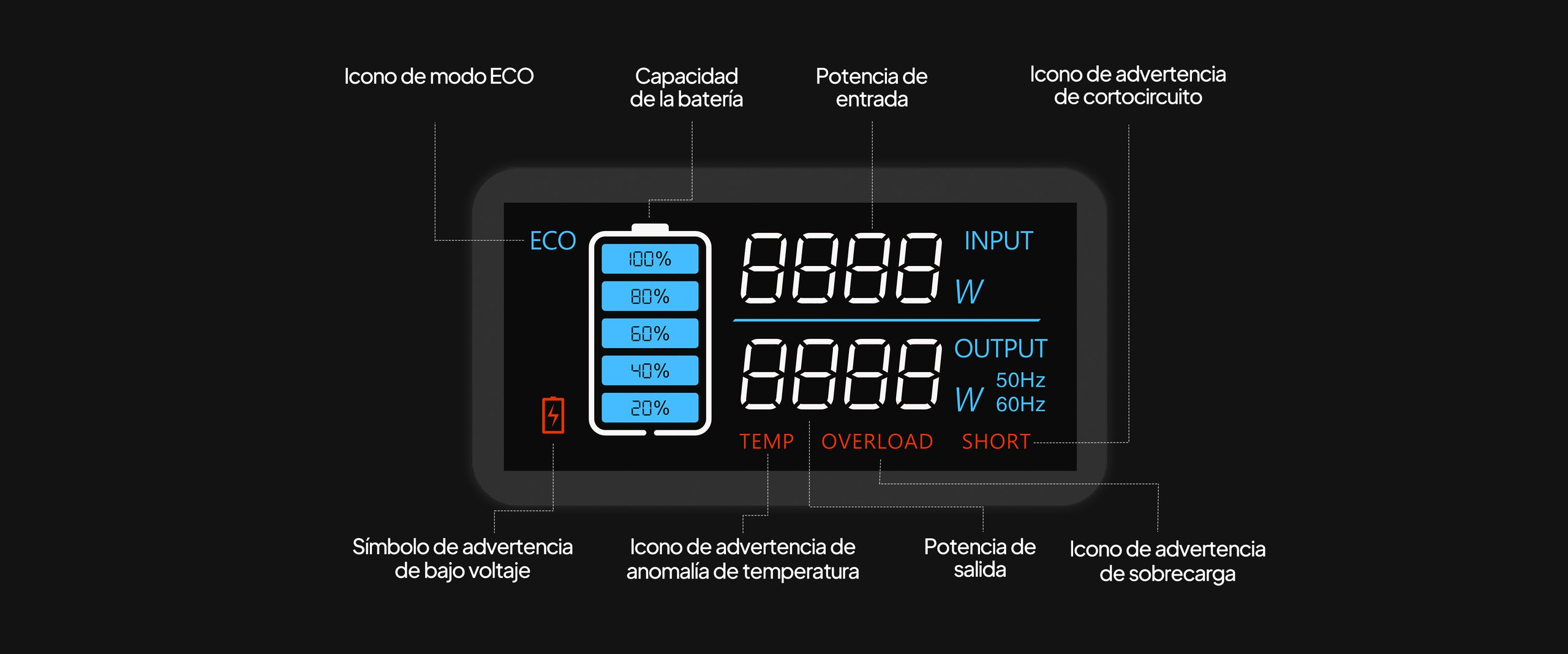 • Con 2 salidas de CA, 4 puertos USB-A, 2 puertos de 12 V/3 A y una salida de coche regulada de CC de 12 V/10 A.