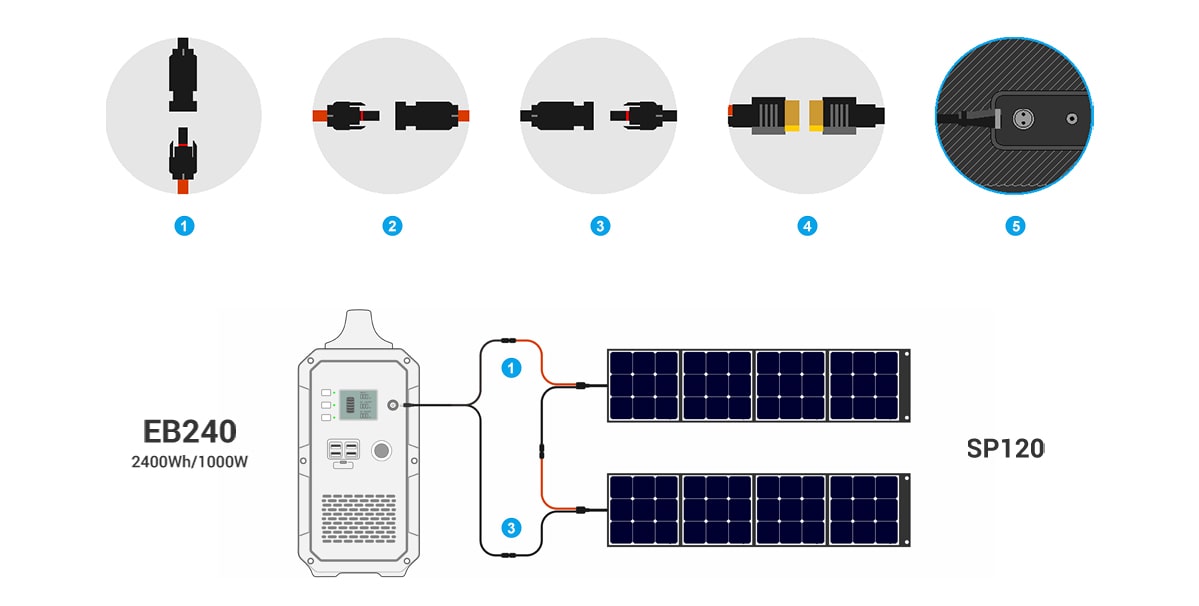 BLUETTI EB240 se adapta a sus necesidades de electricidad ordinarias a una capacidad de 2.400 Wh y admite la carga de baterías solares, de CA, de automóviles y de plomo-ácido para capturar energía cuando y donde sea. * El automóvil y la carga de la batería de plomo-ácido necesitan una D050S.