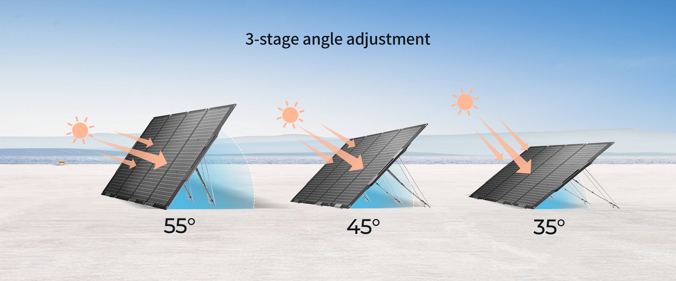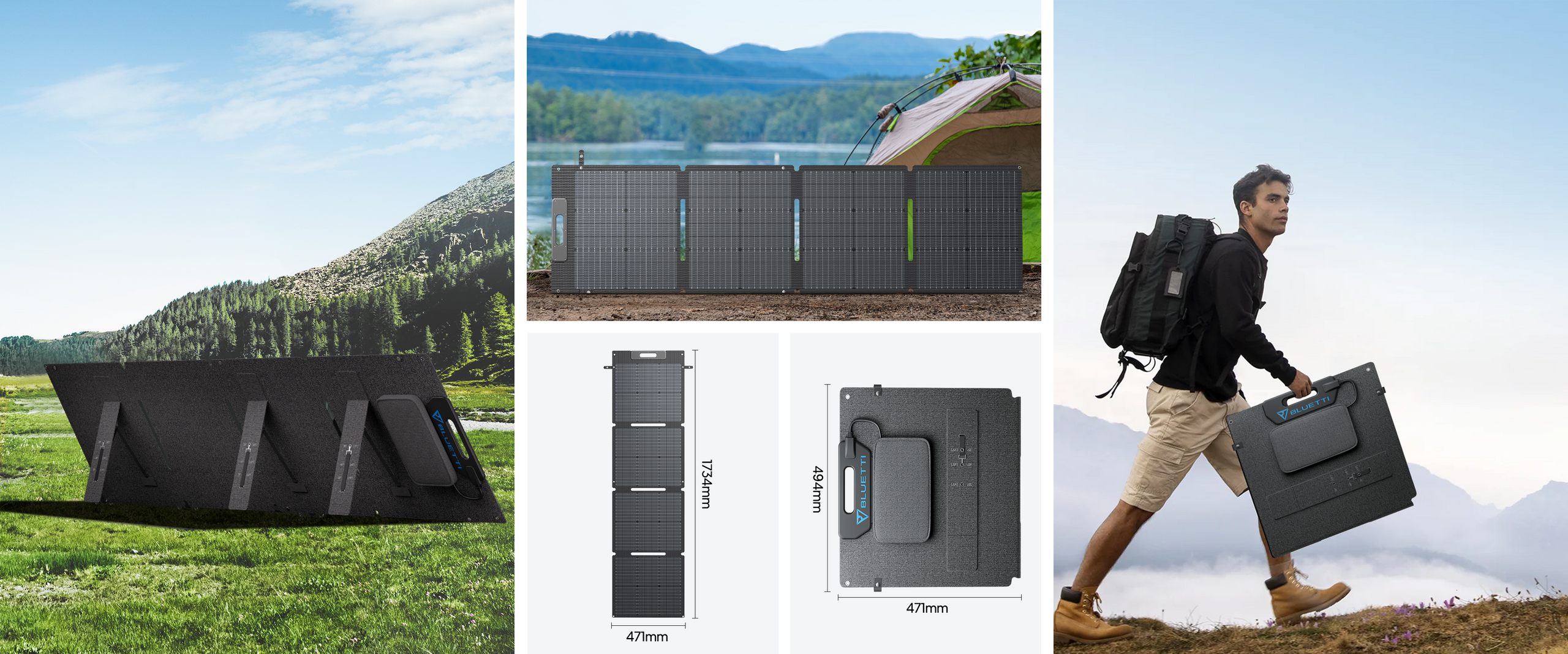 Despliega el SP120L, coloca los soportes, ajusta el ángulo para maximizar la cantidad de luz solar y estará listo para aprovechar la energía solar para tus generadores.