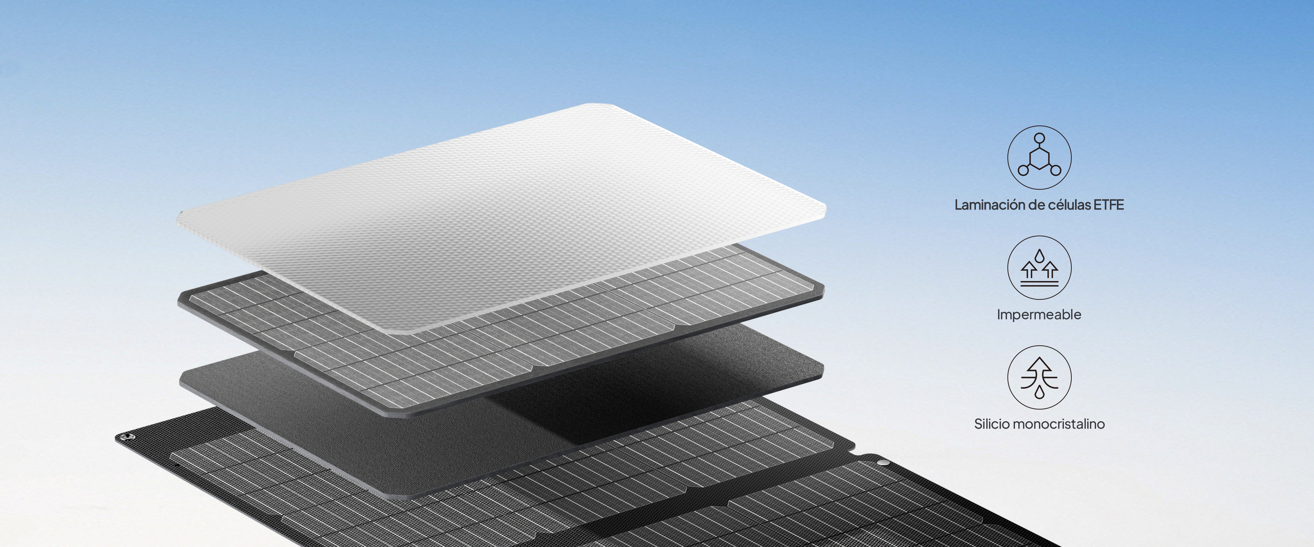 El revestimiento de ETFE y la caja de conexiones IP67 están diseñados para resistir rayones y salpicaduras de agua, perfectos para acampar, pescar, hacer caminatas y mucho más (evita exponerlo a la lluvia o sumergirlo en agua).