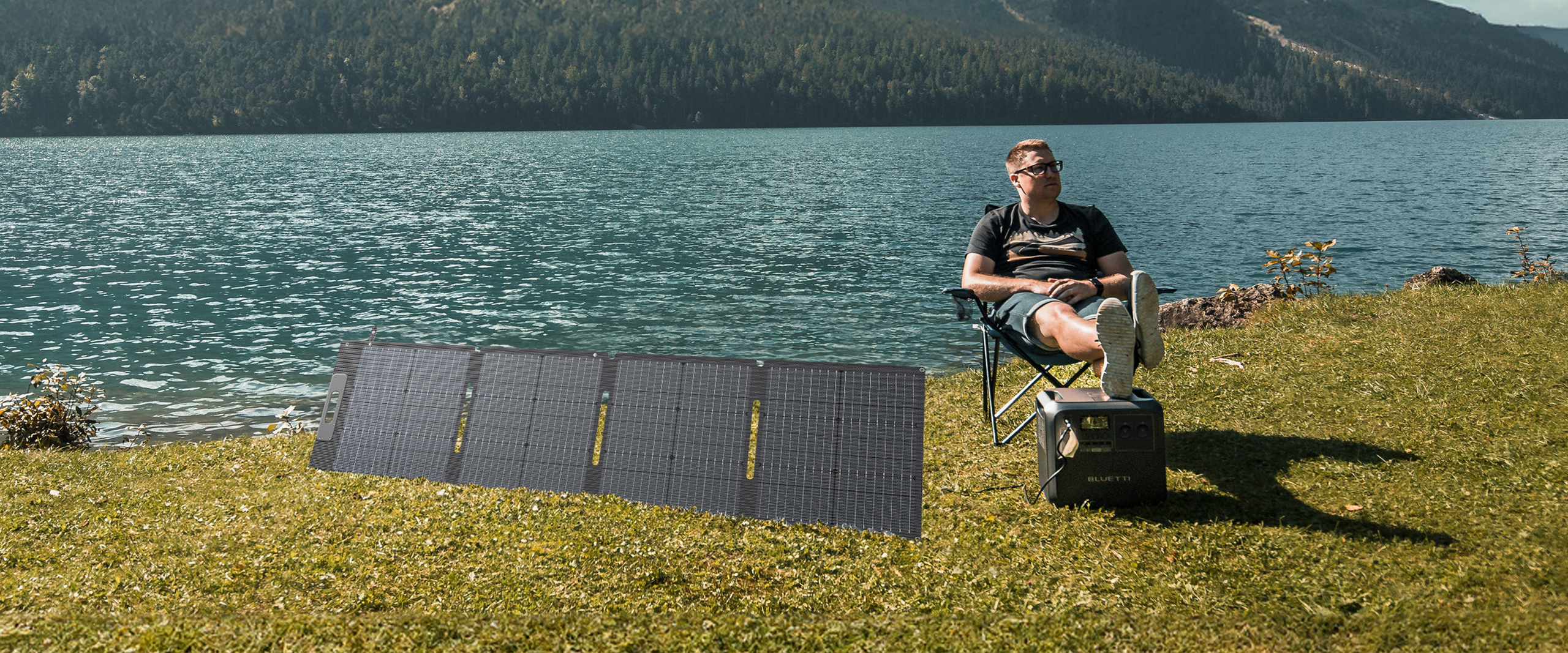 Conéctalo y déjalo. El panel solar BLUETTI de 120 W está configurado para mantener tus generadores solares funcionando mientras haya luz solar disponible.