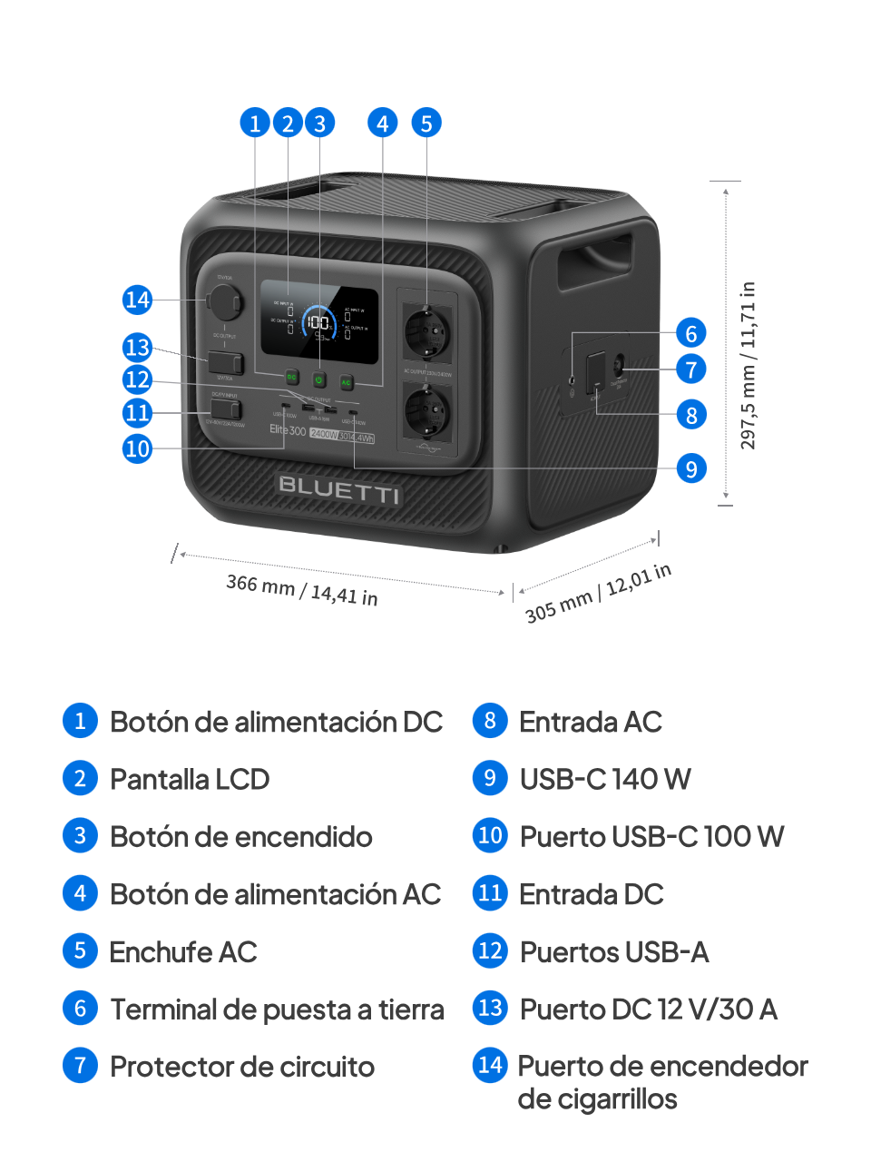 ● 1 × DC 12 V/30 A (para dispositivos de alto consumo, como bombas de agua)